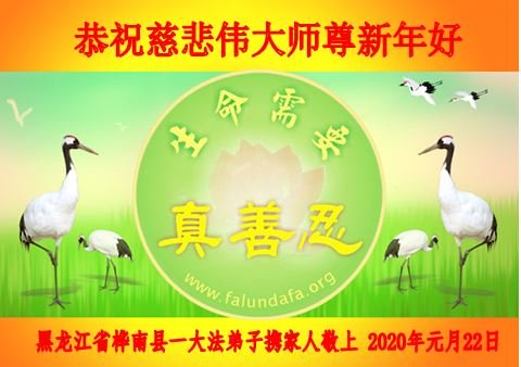 【明慧网二零二零年一月二十五日】 黑龙江省佳木斯市桦南县一大法弟子及家人向伟大慈悲的师尊恭祝新年好!