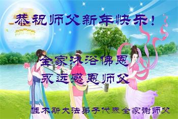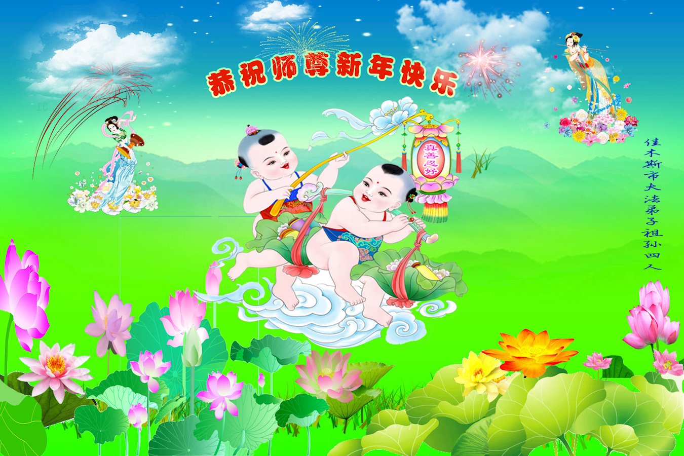 新年到,弟子感恩师尊无以言表。自己的命是师父给延续来的,同时濒临灭亡的一家人也都在大法中受益。师父的大慈大恩人间没有语言能表达。 弟子在最后的正法机缘里,做好大法弟子该做的,少留下遗憾,多让师父开心、高兴!弟子一定尽力做好三件事,叩谢师尊! 黑龙江省佳木斯市大法弟子祖孙四人恭祝师尊过年好!