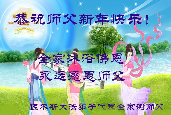 每逢佳节倍思亲 遥望西方忆师恩 邪恶疯狂心不动 救度众生我紧跟师尊 每逢佳节倍思亲 遥望西方想师尊 今日又逢新年到 感恩师尊叩拜师尊 黑龙江省佳木斯大法弟子恭祝师父新年快乐!