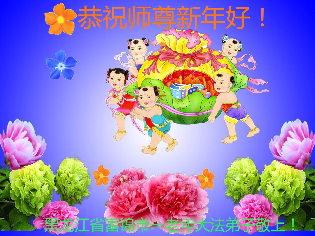黑龙江省佳木斯市富锦市一老年大法弟子恭祝师尊新年快乐!