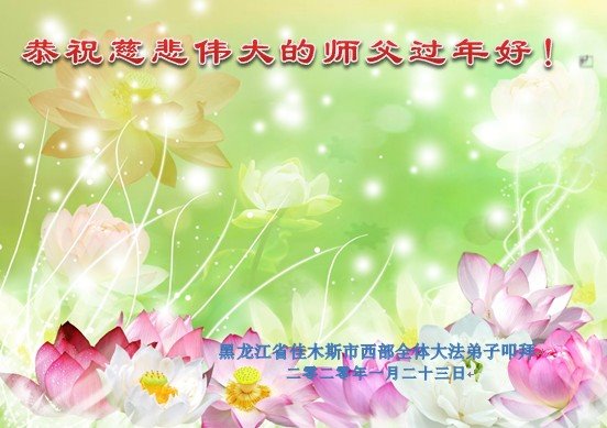 恭祝慈悲伟大的师父过年好! 黑龙江省佳木斯市一家大法弟子敬祝 二零二零年一月二十三日 黑龙江省佳木斯市西部全体大法弟子恭祝慈悲伟大的师父过年好!
