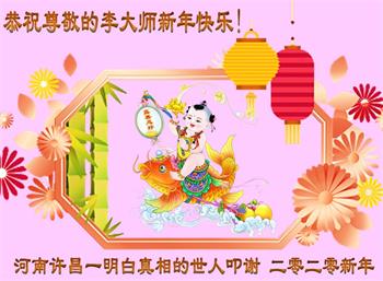 河南许昌明白真相的大法弟子的家人给尊敬的李大师拜年!祝李大师过年好!