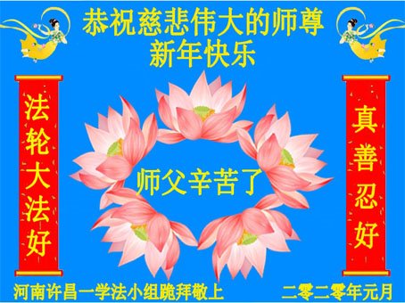 【明慧网二零二零年一月二十五日】 河南许昌一学法小组大法弟子恭祝慈悲伟大的师尊新年快乐!师父辛苦了!