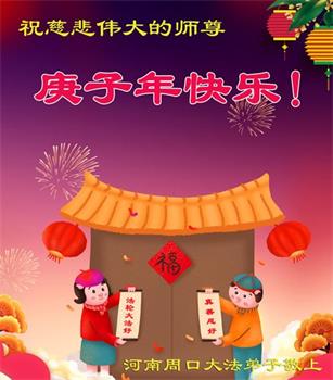 河南许昌一大法弟子及其家人恭祝慈悲伟大的师尊新年快乐! 河南周口大法弟子恭祝师尊庚子年快乐!