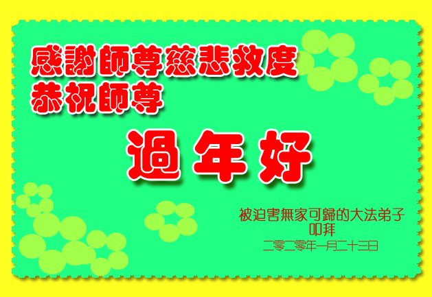 【明慧网二零二零年一月二十五日】 福建省南平市浦城县一学法小组大法弟子恭祝师尊过年好!
