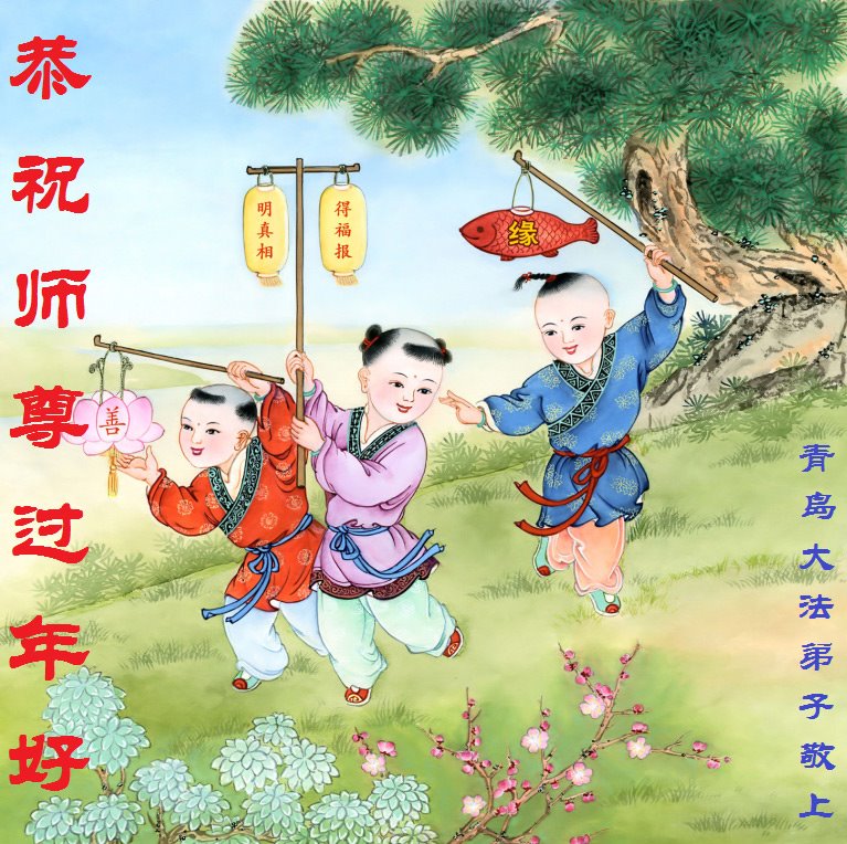 师尊您好 弟子给师尊拜年啦! 在新的一年里,弟子紧跟师尊的正法進程,精進实修,完成使命,兑现誓约。 弟子铭记师尊教诲:“大家把剩下的事做好,用你无悔的修炼过程走向未来。” 青岛市市南区一学法小组大法弟子合十敬拜 山东省青岛法轮大法老年学法小组大法弟子恭祝慈悲伟大师尊新年快乐!