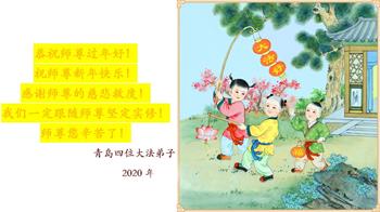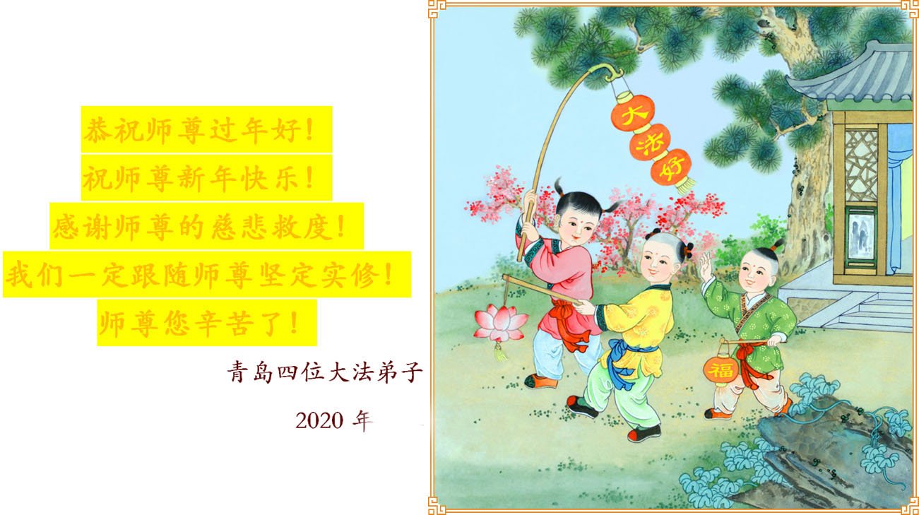 【明慧网二零二零年一月二十五日】 山东省青岛市市南区一学法小组大法弟子恭祝慈悲伟大师尊新年快乐!