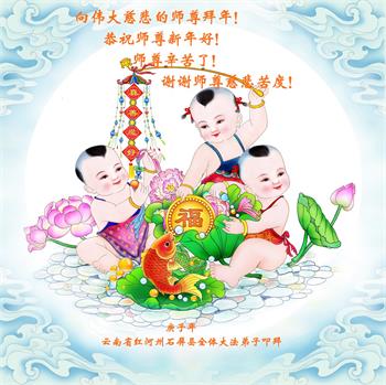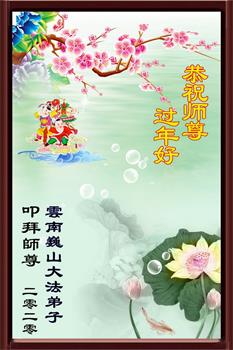 师父辛苦了!弟子叩拜师父! 云南省全体大法弟子恭祝慈悲伟大的师尊过年好!