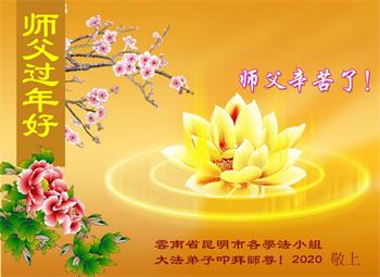云南昆明市一学法小组大法弟子向师尊拜年!