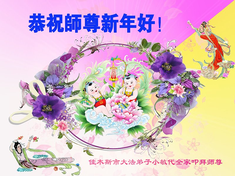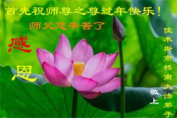 【明慧网二零二零年一月二十六日】 黑龙江省佳木斯市一大法弟子恭祝慈悲伟大的师父过年快乐!