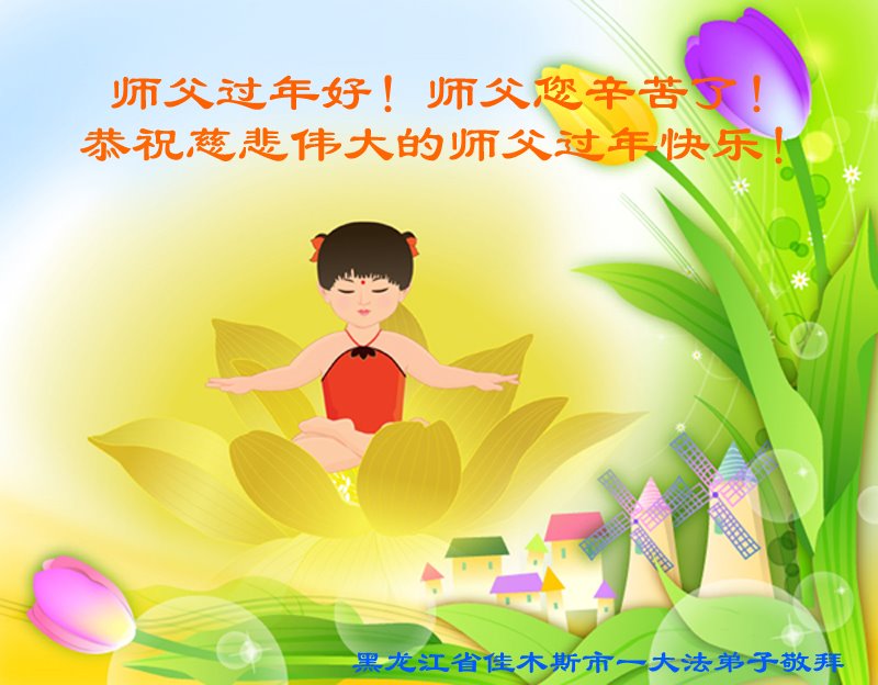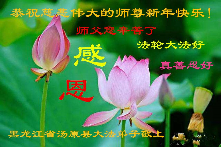 问候慈悲伟大的师尊新年好!盼望师尊早日回大陆!谢谢师尊慈悲救度! 黑龙江省佳木斯市大法弟子恭祝师尊新年好!