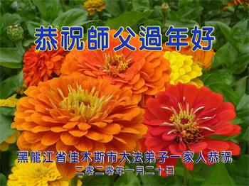我是黑龙江佳木斯一老年大法弟子,在这新年到来之际,我们全家人向最慈悲伟大的师尊李洪志师父拜年啦,祝师尊新年快乐!永永远远的幸福。请师尊放心,弟子一定要努力精進,走好最后的路,和师父回家。合十 黑龙江佳木斯大法弟子及家人恭祝慈悲伟大的师尊中国新年快乐!