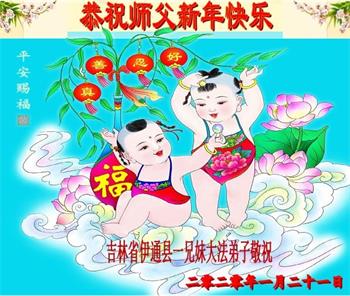 吉林省四平市公主岭市、伊通县一兄妹大法弟子恭祝师父新年好!