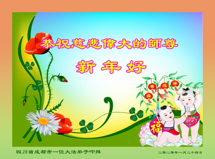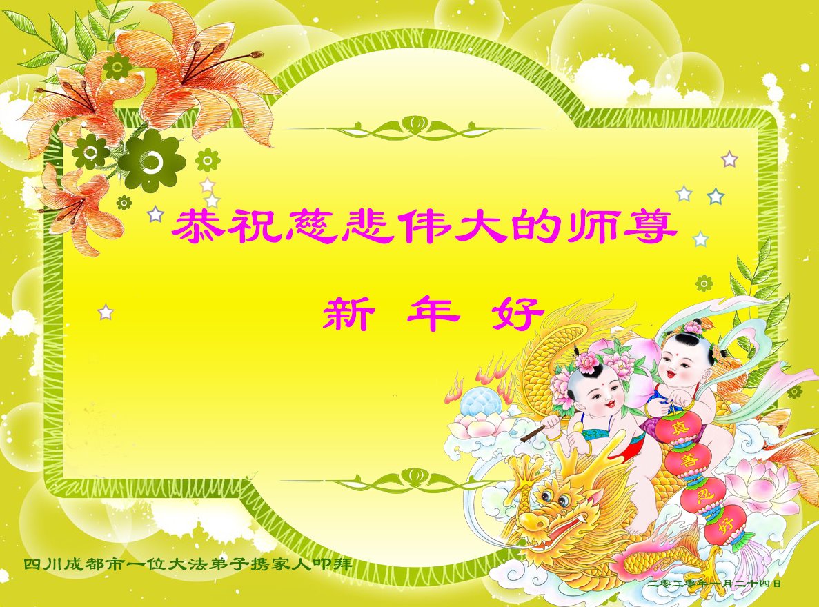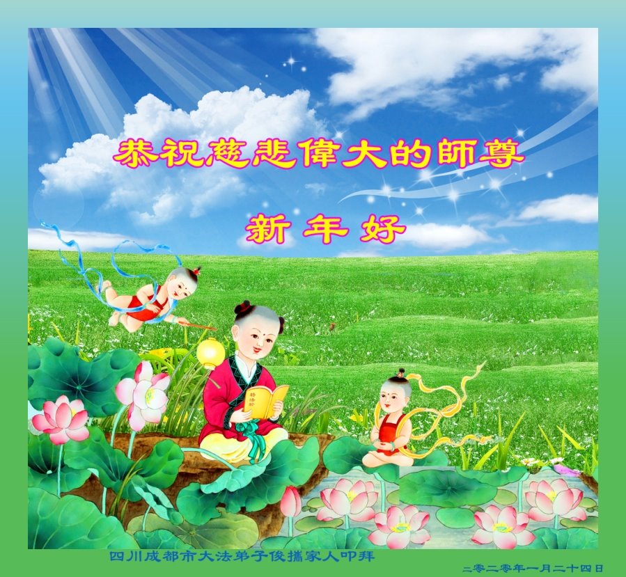 师尊您辛苦了! 四川省成都大法弟子恭祝慈悲伟大的师尊过年好!