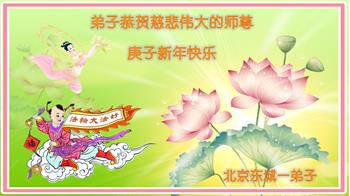 北京西城区五名大法弟子给师尊拜年!恭祝师尊过年好! 黄历庚子新年到, 恭祝师尊过年好! 感恩师尊苦救度, 去除执着法记牢。 二十几载风雨摇, 幸有师尊法光照, 兑现誓约多救人, 弟子精進把恩报。 北京西城区五名大法弟子敬上 北京通州一学法小组大法弟子恭祝师尊新年好!