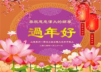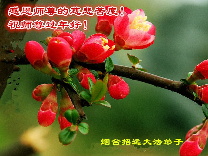 山东聊城市东昌府区、开发区大法弟子恭祝师父新年快乐!师父您辛苦了,感谢师父慈悲救度,弟子一定精進实修,不负师恩! 山东烟台招远大法弟子衷心敬祝师尊过年好!