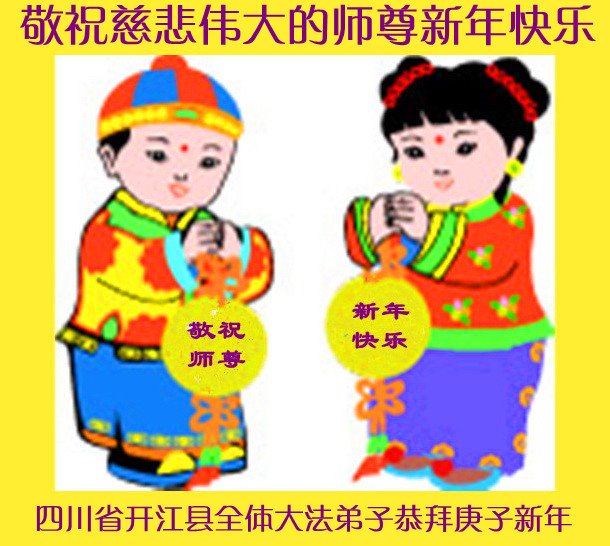师尊您辛苦了!弟子跪拜谢师尊慈悲苦度!在新的一年里弟子唯有修炼如初、勇猛精進,才能报师恩。让师尊多一份欣慰,少一份操劳! 四川广安一大法弟子恭祝师尊新年好!