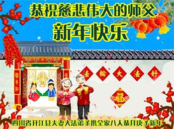 四川省达州市开江县夫妻大法弟子携全家八人恭祝慈悲伟大的师父新年快乐!