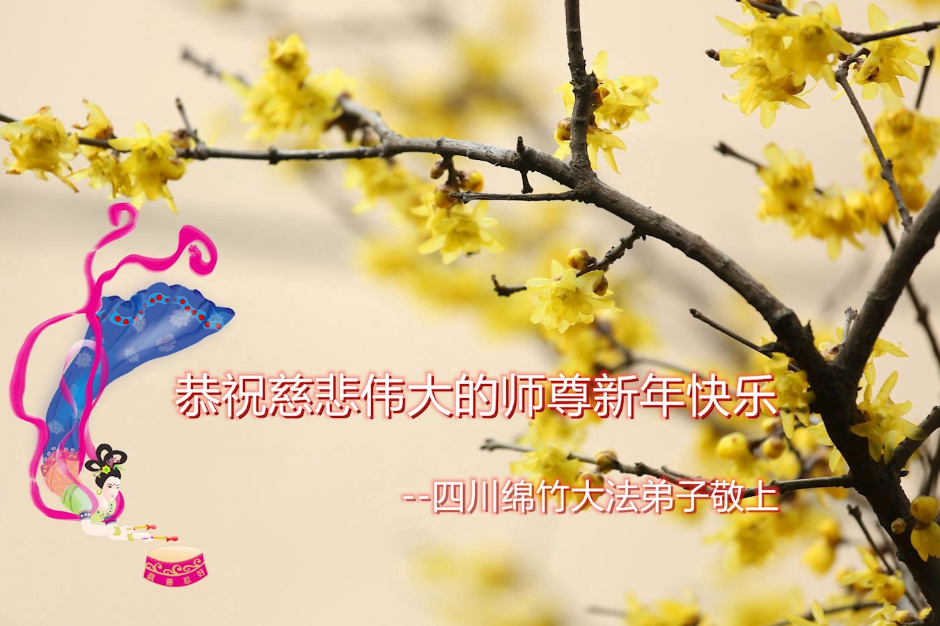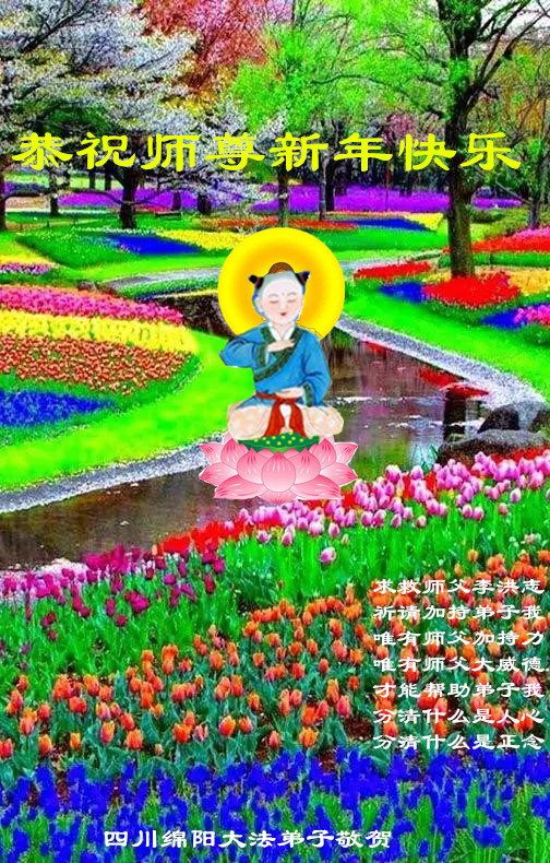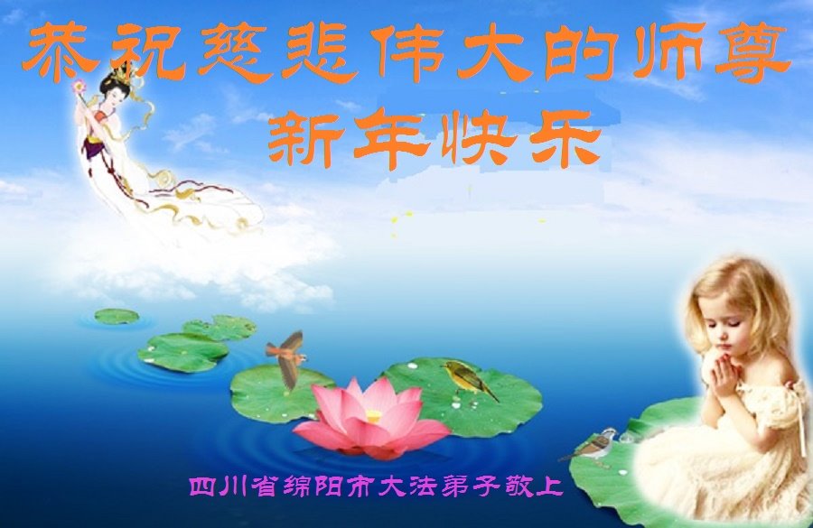值此新年之际,四川绵竹大法弟子恭祝慈悲伟大的师尊新年好! 虽然过去一年四川绵竹大法弟子受到迫害,但我们一定正念正行,坚修大法紧随师。扎实学法修炼,做好三件事,圆满随师还。 四川绵阳大法弟子恭祝慈悲伟大的师尊过年好!