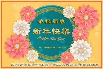 四川省德阳市中江县一家三人大法弟子跪拜师尊 四川省德阳市中江县大法弟子恭祝师尊新年快乐!