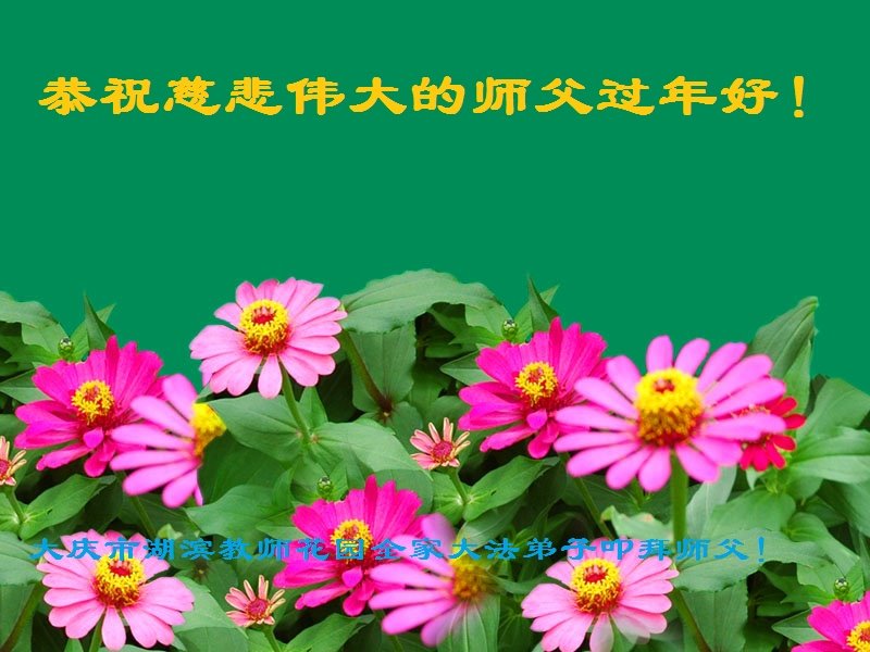 回忆我们一家三口在大法中修炼24年的经历,无不渗透着师尊的关怀与保护!由于在常人中迷的太深,师尊三次莅临大连我们都没有福气亲见师面(还没有得法),一直是我们的一大遗憾!最近系统的听了同修们的忆师恩回忆,知道了师尊来大连传法去过的地方,如大连外语学院、星海公园、星海广场、滨海路、旅顺日俄战争遗址和老铁山灯塔等处,我们有了一些欣慰,因为在二十四年的讲真相中这些地方我们都去做过真相! 师尊过年好!弟子们给您磕头拜年了! 在正法的最后时刻,弟子们一定做好,跟上师尊正法進程,圆满随师还,惟愿师尊笑! 湖南省衡阳市教育系统大法弟子向师父拜年!恭祝师尊新年好!