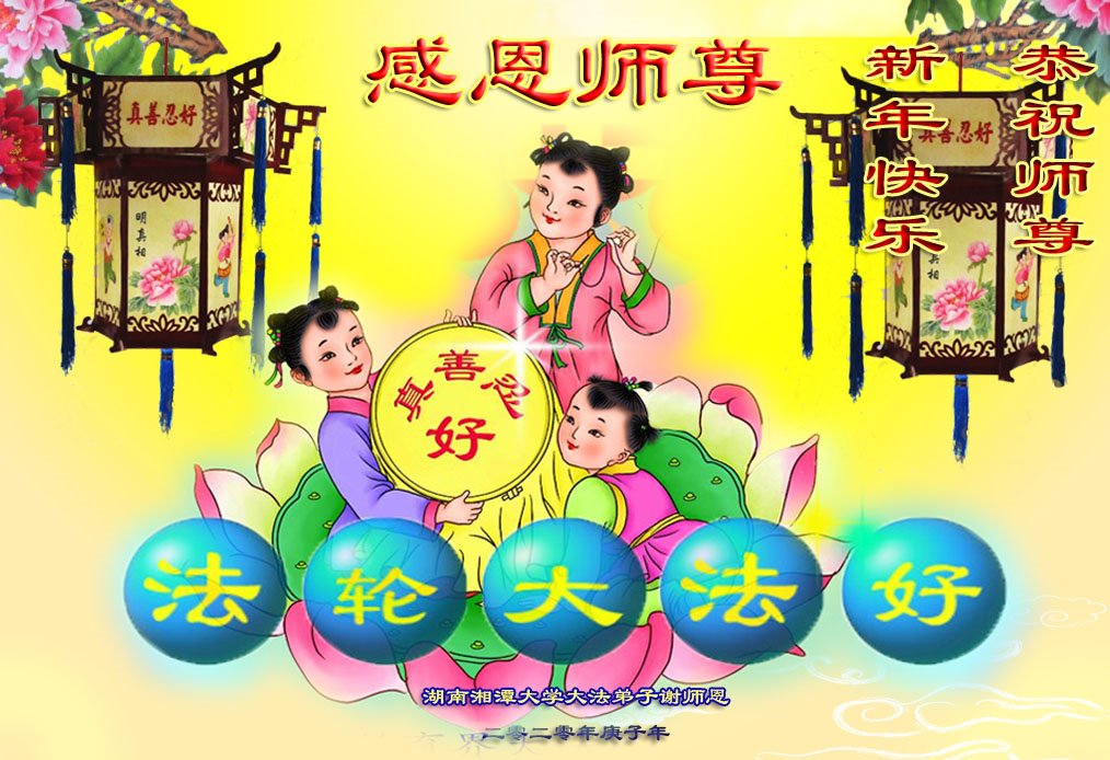 恭祝慈悲伟大的师尊新年快乐! 湖南省湘潭大学大法弟子给师尊拜年!恭祝师尊新年快乐!
