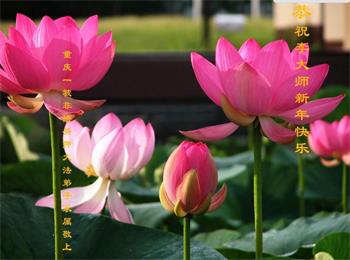 慈悲伟大的师父过年好! 弟子已经在大法中熔炼了十五年,整个身心发生了脱胎换骨的变化,在师父指引的金光大道上不断的实修着。师父的救度之恩无以言表,仅在此新春佳节之际献上一份美好的祝愿,祝师父新年快乐!愿师父所有的弟子新的一年更上一层楼!愿众生都能闻听到大法的福音,都能拥有美好的未来! 同时也代表我明真相的家人众生们恭祝师父新年好! 黑龙江省哈尔滨市双城区一大法弟子携家人敬上 二零二零年一月二十日 |