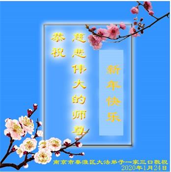 江苏省南京市秦淮区大法弟子一家三口敬祝慈悲伟大的师尊新年快乐!