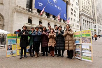 在华尔街景点讲真相的大法弟子给师尊拜年!