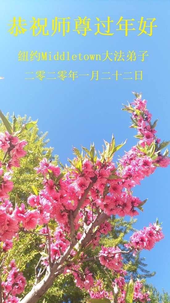 在新春佳节来临之际,弟子虔诚的叩拜师父:恭祝师父新春佳节快乐! 弟子深知师父为了我们及世人的得救,一年又一年承受着巨大的业力,弟子无限感激师父的慈悲救度之恩! 弟子深感修炼时间的紧迫,能在正法时期跟随师父修炼,救度众生,是何等的幸运!弟子愿永远跟随师父,不断的修去人心,兑现来世的誓约,跟随师父回家。 一位在纽约的大法弟子敬献 二零二零年一月二十二日 美国纽约法拉盛大法弟子恭祝慈悲伟大的师父过年好!