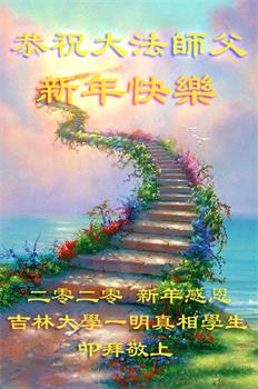 师父新年好! 吉林省吉林大学一明真相学生恭祝大法师父新年快乐!