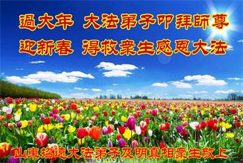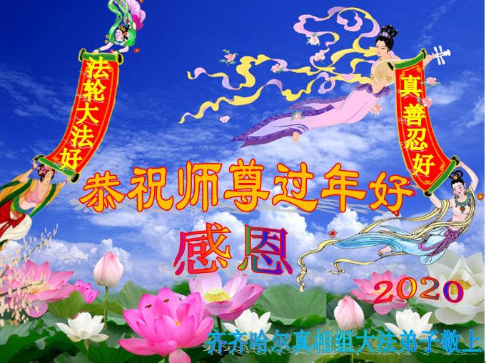 | 【明慧网二零二零年一月二十六日】中共迫害法轮功二十年,法轮功学员如冰雪中的梅花,凌寒中散发着芬芳,把法轮大法好、退!党!保平安的福音传遍中国每一个角落。中国大陆传播真相的大法弟子们深感助师正法救度众生的幸福与荣耀,在传统大年到来之际,恭祝慈悲伟大的师尊过年好! 河南大法弟子在贺词中写道:“弟子的一朵小花(资料点),在师尊的保护下,平稳的开了二十年了,凭着对师尊对大法的感恩和坚信走到今天,制作了大量的各种真相资料救度众生。在最后的时间里,我会更加精進的做好三件事。” 湖北省大法弟子表示:现在世人都在觉醒,爱听真相,三:退.后喜悦之情溢于言表。弟子们要更加精進,利用有限的时间更多救人,回报师恩! 湖南衡阳珠晖区大法弟子恭祝慈悲伟大的师父新年快乐!慈悲伟大的师尊:您好! 弟子深感幸福与荣耀,沐浴师尊的佛恩浩荡,也在修炼中越来越成熟。如面对警察不再那么惊慌了,而是敢于对他们讲真相。尤其是读了同修文章后,使自己在修炼上更加明晰。师父的慈悲是无以言表,在今后的修炼上更加精進,修好自己,努力兑现誓约,跟师父回家。 湖南衡阳珠晖区大法弟子跪拜 上海市一讲真相小组大法弟子三人恭祝慈悲伟大的师尊新年好!慈悲伟大的师尊您好!恭祝师尊新年快乐! 转眼又迎来了华夏儿女的传统新年佳节,在这辞旧迎新举家欢度的喜庆日子里,我们向远在大洋彼岸的慈悲伟大的师尊拜年了!师尊您辛苦了!我们衷心遥祝师尊新年快乐! 每逢佳节倍思亲,弟子非常想念您,盼望与师尊早日团聚。回首岁月,弟子感慨万千。洪大慈悲的师尊把满身污泥的弟子从地狱中捞起洗净,成为师尊的弟子,并赋予了宇宙众神都仰慕的伟大荣耀和威德的正法时期的大法弟子称号,成为宇宙中最幸福的生命。 弟子深感用尽人类的语言也无法表达师尊的佛恩浩荡。唯有在今后的岁月里,不辜负师父的期望,不负众望,紧跟正法進程,把三件事做得再好一些,以实际行动来回报师恩。 上海讲真相小组大法弟子三人合十跪拜 四川成都大法弟子恭贺师尊大年好!伟大慈悲的师尊您过大年好!二零二零年大年即将来临,我们天天面对面讲真相的二十个四川成都老年大法弟子非常感恩师尊的慈悲苦度!今后要在这很有限的时间内更加修好自己,多多救度世人,做好大法弟子应该做好的三件事,以报师尊的苦度之恩! 山东省沂水县乡村一学法小组全体大法弟子恭祝慈悲伟大的师父新年好!恭祝慈悲伟大的师尊二零二零新年快乐! 我们学法小组在师尊的看护下走到了今天,让师父操心了。历经风霜雨雪,且看今天梅花香,真修弟子誓随师还。 有谁会相信,学法前目不识丁的农村妇女会操作电脑打印机,这就是我们师尊的弟子,在助师正法的路上所展现的神迹。同修不会制作,但她们都有一颗敬师的心,我代她们向师父问好,再次感谢师父的救度之恩! 山东省沂水县乡村一学法小组全体大法弟子敬拜 黄历二零一九年腊月十九日 湖北省荆州市公安县一学法组全体大法弟子恭祝师尊新年快乐!恭祝师尊新年快乐! 现在世人都在觉醒,爱听真相,三:退.(退出中共党团队)后,喜悦之情溢于言表。弟子们要更加精進,利用有限的时间更多救人,回报师恩! 山东招远大法弟子及得救众生同祝慈悲伟大的师尊过年好!过大年 大法弟子叩拜师尊 迎新春 得救众生感恩大法 我们招远市全体大法弟子恭祝尊慈悲伟大的师尊过年好!感恩师尊,跪拜师尊。 二十年的反迫害讲真相,我市大法弟子以各种形式救人,使不少世人明白了大法真相,退出了邪*党-组织。有不少大法弟子一天不落的讲真相救人。很多世人明白真相后感谢大法感谢师父,有的世人得救后,嘱托大法弟子每逢节日一定代他们向大法师父问好。 在新的一年里,我市全体大法弟子要更加注重修好自己,跟上正法進程,不辱使命,走向美好未来。 辽宁地区安装新!唐!人:接收器的大法弟子给师尊拜年!辽宁地区安装新!唐!人:接收器的大法弟子给师尊拜年,弟子无惧酷暑严寒,邪恶疯狂,坚定走好最后正法路,圆满随师返家园。 弟子叩师尊。 辽宁省沈阳市一资料点全体弟子恭祝师尊新年快乐!我们是“刚刚绽放的一朵小花”的全体参与者,在我地区资料点遭到严重破坏的情况下,我们顶着压力,自发行动,自然组合,承担起了制作真相资料的事情。 在迫害的血雨腥风中弟子们更深知什么是佛恩浩荡!在与邪恶抢人救人中弟子们深感责任重大! 在新的一年里,弟子们会更加精進的做好三件事,修好自己,多救众生,愿师尊多一份欣慰,少一份操劳。 在新年佳节即将到来之际,我们衷心的恭祝师尊新年快乐! 合十!叩拜! 黑龙江佳木斯一资料点的大法弟子恭祝慈悲伟大的师尊新年快乐!新年好!跪拜恩师!师恩浩荡救众生 助师正法世间行 邪恶疯狂心不动 更使弟子越坚定 我家开了一朵花 十六年来如一日 每天散发着花香 普浴着每个生命 救度着这的众生 不管正法延多长 这花永绽放发光 正念正行精進修 圆满随师返家园 河北省石家庄一讲真相小组大法弟子恭祝师尊新年快乐!在师父的慈悲保护下我们小组配合讲真相走过了九年的历程,风风雨雨中坚持了下来,为了兑现大法弟子的使命,为了不负师尊的慈悲苦度,在新的一年里更精進,走好师父安排的修炼路,叩谢师恩。全家人叩谢慈悲伟大的师尊。惟愿师尊笑。 河南省一真相小组大法弟子恭祝慈悲