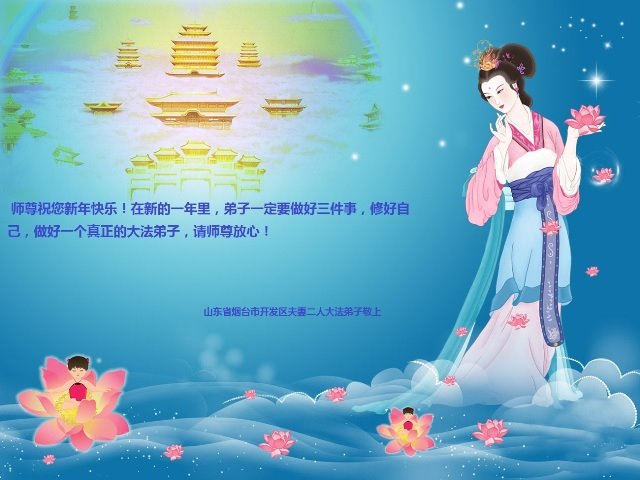 转眼又一年过去了,在新的一年里,弟子一定要迎头赶上。请师尊放心,弟子要做好三件事。谢谢恩师! 山东烟台一大法弟子恭祝慈悲伟大的师尊新年快乐!
