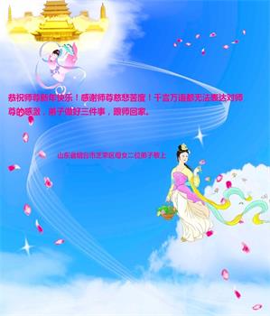 师父辛苦了!叩拜师父! 山东省威海市荣成市一位大法弟子的家属给大法师父拜年!