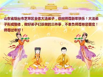 师尊您辛苦了!感谢师尊慈悲救度! 我们莱山区大法弟子一定好好配合,共同精進,做好三件事,圆满随师还家园。 山东省烟台市莱山区大法弟子祝师尊过年好!新年快乐!