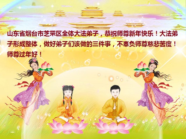 山东省烟台市芝罘区全体大法弟子恭祝师尊新年快乐!