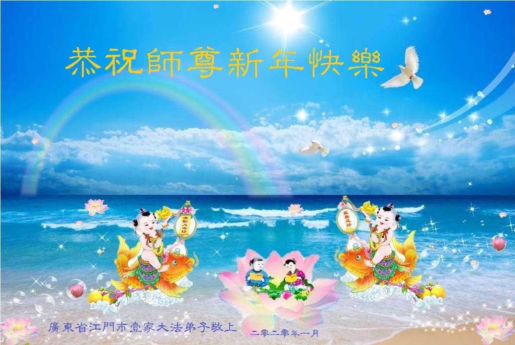 广东省江门市一大法学员给慈悲伟大的师尊拜年!恭祝师尊新年好!