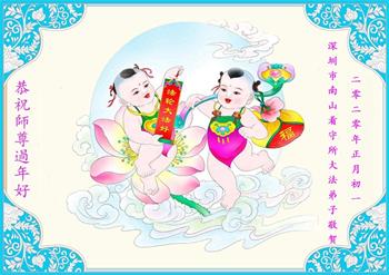 师尊新年好!感恩师尊救度之恩!我们一家在师尊的看护下幸福美好。我们会在新的一年里更努力讲真相,救众生。 广东省一大法弟子全家恭祝师父新年快乐!