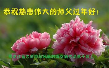 黑龙江省大庆市母女俩大法弟子恭祝师父新年好:师父您辛苦了!谢谢师父的无量慈悲!谢谢师父珍惜众生! 黑龙江大庆大法弟子给您拜年!恭祝师尊新年快乐!