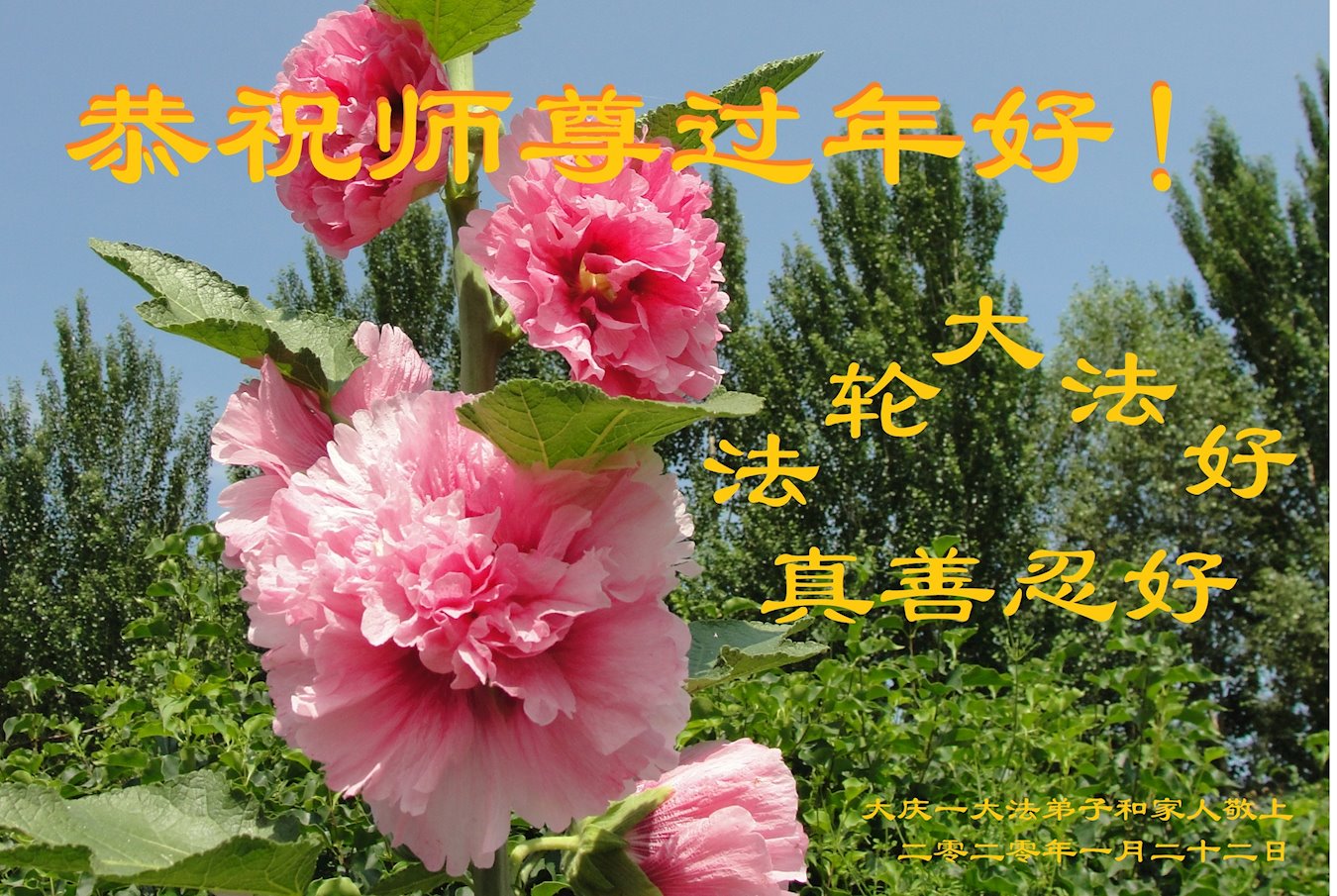 弟子恭祝师尊过年好!师尊辛苦了! 多谢师尊慈悲救度,叩拜师尊! 大庆一大法弟子和家人敬上 二零二零年一月二十二日 黑龙江省大庆肇州大法弟子恭祝师尊过年好!