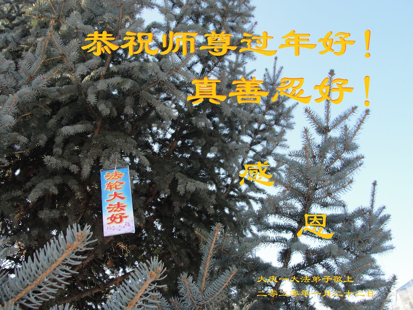 弟子恭祝师尊过年好!师尊辛苦了,多谢师尊慈悲救度,叩拜师尊。 大庆一学法小组大法弟子敬上 二零二零年一月二十一日 黑龙江省大庆肇州一大法弟子恭祝师尊过年好!