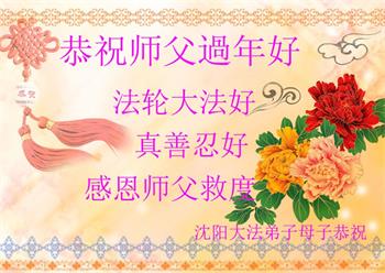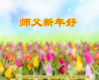 师父辛苦了! 我们是沈阳市沈河区一学法小组的4名大法弟子,每逢佳节倍思亲,我们非常想念您,在此恭祝伟大的师尊过年好!用尽全人类的语言也无法表白师尊对我们和世人的恩情,弟子们唯有在师尊用巨大的付出延续来的时间内抓紧实修,用师尊赋予的“向内找”的法宝,多去执着心,静心学法,多背法,同时抓紧每分每秒的时间多救人,以谢师恩! 我们小组的同修想跟师尊说我们几个彼此多看别人的长处,互相提醒,不要懈怠,勇猛精進,以谢师恩! 辽宁省沈阳市大法弟子一家恭祝师父新年好!