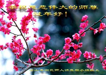 师尊过年好! 师尊您好!师尊您太辛苦了,感恩师尊慈悲救度!我们一定牢记师尊的教诲,多学法学好法,修好自己,珍惜师尊延续的时间,我们要多救人做好三件事,以报师尊救度之恩。 河北省唐山市路南区一学法小组全体大法弟子叩拜敬上。 2020年1月18日。 河北唐山市丰润区二人讲真相小组大法弟子恭祝师父新年好!