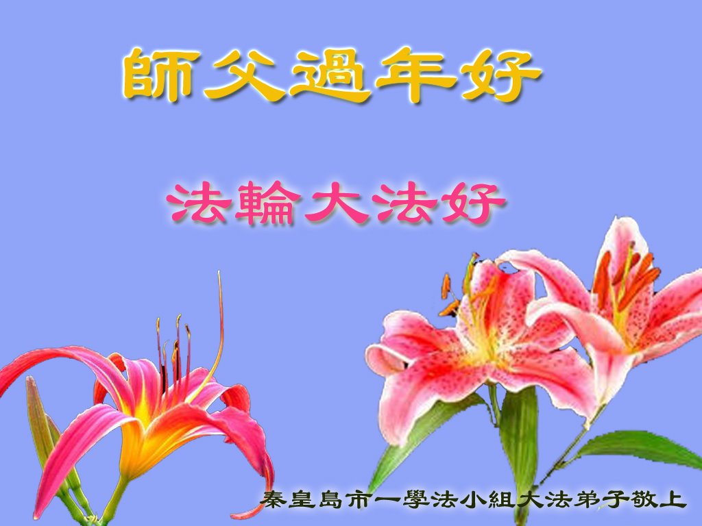 师尊过年好! 谢谢师尊慈悲苦度! 谢谢师尊托着弟子向前走! 弟子一定走好师尊铺垫好的路! 合十,叩拜师尊。 河北省秦皇岛市学法小组大法弟子恭祝师尊过年好!