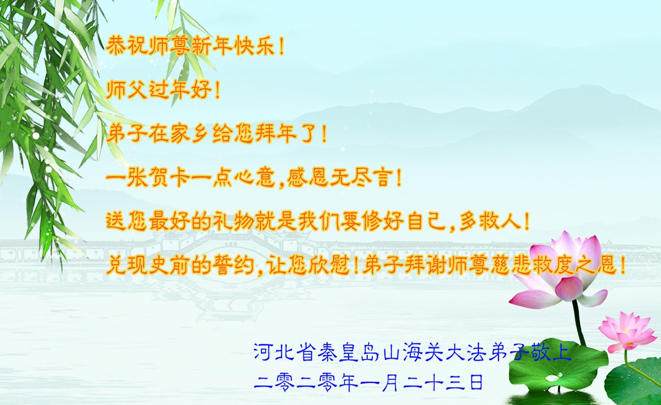 【明慧网二零二零年一月二十七日】 河北秦皇岛一学法小组大法弟子恭祝慈悲伟大的师尊过年好!