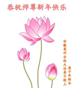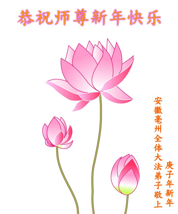 给慈悲伟大的师尊拜年:恭祝师父2020年新年好!感恩师父慈悲救度! 安徽亳州一大法弟子叩首敬上 2020年1月23日 安徽省宿州市砀山县一学法小组大法弟子恭祝慈悲、伟大的师尊新年快乐!