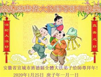 感恩师尊慈悲苦度,跪拜师恩。在新的一年,更加精進,助师正法,做好三件事,兑现誓约。 安徽省宣城市旌德县全体大法弟子给师尊拜年!恭祝师尊新年好!