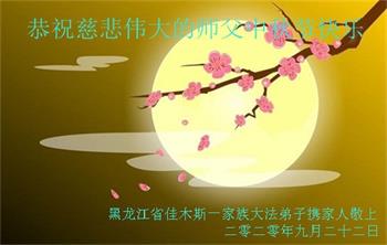 黑龙江省佳木斯一大法弟子携家人恭祝师父中秋节快乐!