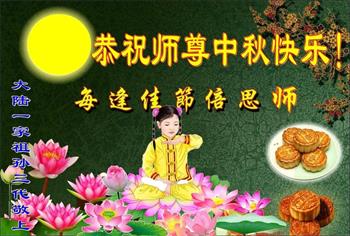 一年一年又一年 中秋佳节到眼前 遥望万里心思念 双手合十拜师尊 中秋佳节谢师恩 三件事上多用心 同化大法事事成 瘟疫爆发急救人 兑现誓约了心愿 修好自己回天庭 河北省保定市阜平县一大法弟子恭祝慈悲伟大的师尊中秋节快乐!