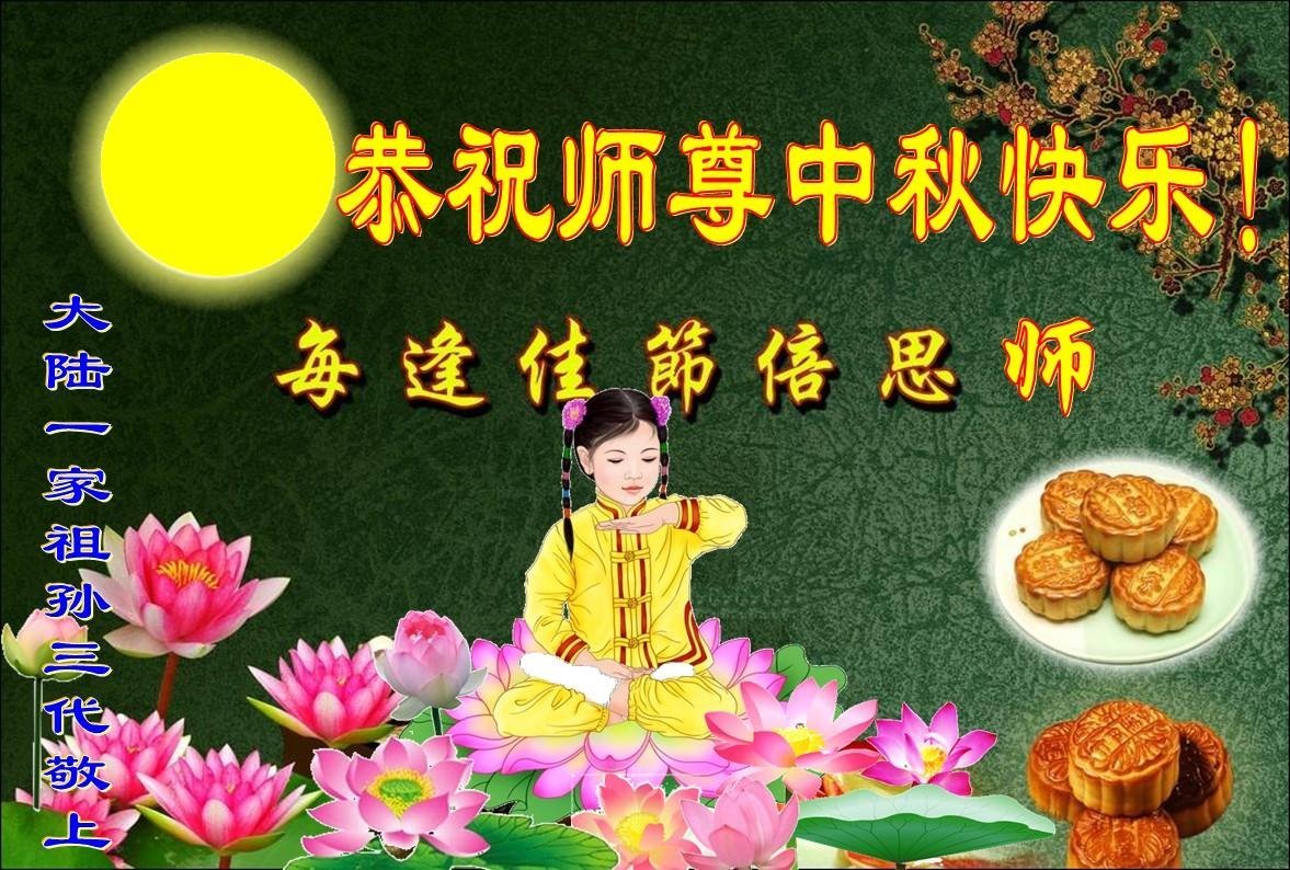 八月十五月儿圆 远隔重洋拜师尊 洗净弟子脱凡尘 有限时间更精進 世间乱象不动心 救人脚步不能停 人心执着全不要 修好自己回天庭 河北省保定市雄县一家三口大法弟子跪拜!恭祝师尊中秋节快乐!